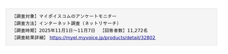 マイボイスコム株式会社(東京都千代田区、代表取締役社長:高井和久)は、7回目となる『パスタソース』に関するインターネット調査を2025年11月1日~7日に実施しました。