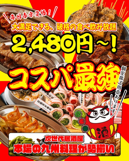 笑顔で楽しく安く。当店自慢の九州料理を最大75種ご堪能いただけます。