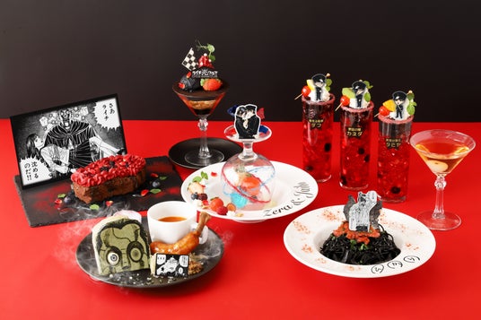 カフェでは、作中に登場する”ライチ酒”を再現したドリンクや、連載開始20周年をお祝いする特別なケーキに加えて、美しくも残酷なシーンを再現したオリジナルメニューをご用意しています。