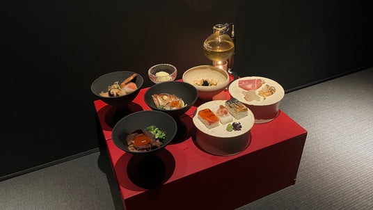 ■メニュー barrierでは、三方(さんぼう)をお膳として利用し、岡持ち(おかもち)に収められた三つのお椀料理に、サイフォンで抽出された一番出汁を注ぎます。 これにより、一杯のお出汁がお客様の食体験に奥深さと芳醇さを加えます。 barrierは、伝統的な日本料理のエッセンスを守りつつも、現代的なアプローチで新たな魅力を引き出すことを目指しています。 漆黒の空間で五感を研ぎ澄ませて、出汁に合う料理をお楽しみください。