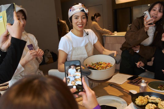 秋の彩りプラントベースランチ 秋の味覚を楽しむレシピを Plantful Journey・ヴェルヌ華子が提案。当日は来場者も一緒にメイド・イン・ジャパンの鋳物ホー ロー鍋「バーミキュラ」を使い、調理体験・食事を存分に楽しめる時間となりました。