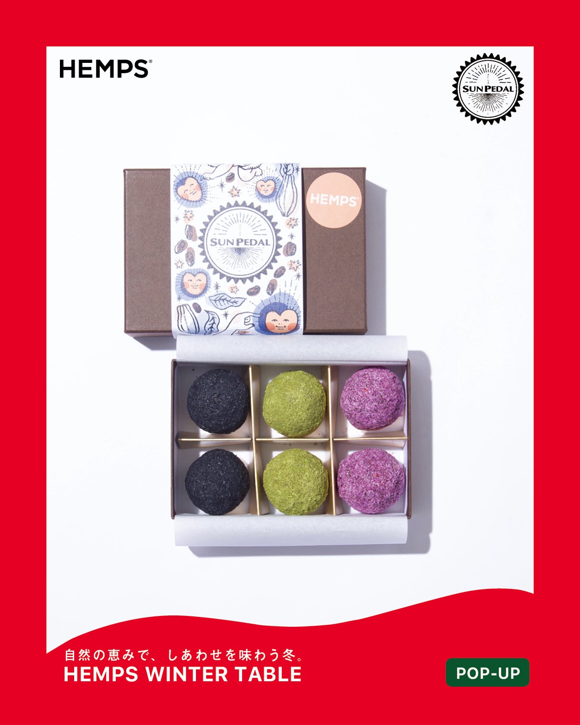 1. SUNPEDAL × HEMPS エナジーボール素材の持ち味を生かした料理で著名人にもファンが多い、ヴィーガンのケータリング事業などを展開する「SUNPEDAL」とのコラボ。