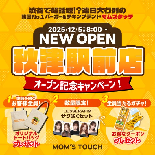 12月5日(金)には、日本5号店となる「MOM`S TOUCH 秋津駅前店」が新たにオープンします。