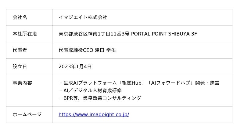 イマジエイト株式会社(本社:東京都渋谷区、代表取締役CEO:津田 幸佑、以下「イマジエイト」)は、株式会社日本農業新聞(本社:東京都台東区、代表取締役社長:田宮 和史郎、以下「日本農業新聞」)と、JA向け生成AIプラットフォーム「報徳Hub」に関するリセールパートナー契約を締結しました。