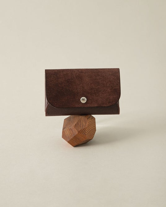 フラップに使用しているレザーは、イタリア・トスカーナ地方の老舗タンナー、バダラッシカルロ社が手掛ける植物タンニン鞣し革「プエブロ」を採用。和紙のような独特な手触りと、スクラッチ加工による深みのある表情が特徴です。使い込むほどに艶やかに変化していく美しい経年変化(エイジング)をお楽しみいただけます。