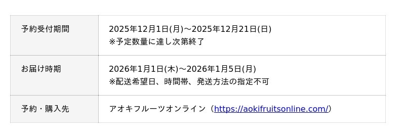 販売概要(アオキフルーツオンラインの場合)