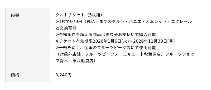 ■『タルトチケット福袋』 対象商品約3.5個分の金額で商品5個と交換できる毎年人気のタルトチケットです。金額条件を超える商品でも、差額分のお支払いのみで購入することができます。旬のフルーツをふんだんに使用したタルトが日常においしさと彩りを添えます。