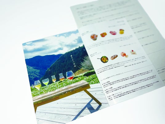 リーフレットがお茶の紹介だけでなくペアリングも紹介されているのがよいと思います。そのときの一品に合わせてお茶を選ぶことも、逆に飲みたいお茶に合わせて一皿作ることもできるのがいいと思います。