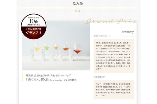 日本茶専門 D2Cブランド「Sora Japanity」(ソラジャパニティ、東京都渋谷区、代表 吉田晴美)が製造・販売する日本茶 茶葉商品「香りたつ茶畑」が2025年11月下旬発表の接待の手土産セレクション2025にて、香りたつ茶畑5品種セット(煎茶・釜炒り茶・和紅茶ティーバッグアソート)が3年連続「特選(最高賞)」「殿堂入り」「人気投票グランプリ」を獲得。販売3年目となる今年で通算受賞6冠となりました。「香りたつ茶畑」は、市場にでまわらない最高品質のシングルオリジン(単一品種)の日本茶が味わえるお湯出し・水出し両用の日本茶 茶葉商品で、ティーバッグまたはリーフが選べる商品。発売以来3年間の皆様への感謝とお茶を介しての温かなハーモニーを目的に、2026年の一年間、公式ECサイトにてオンライン感謝祭「Tea Harmonia 2026」を開催。2025年12/15(月)より、その前年祭として、ささやかな特典をご用意しています。