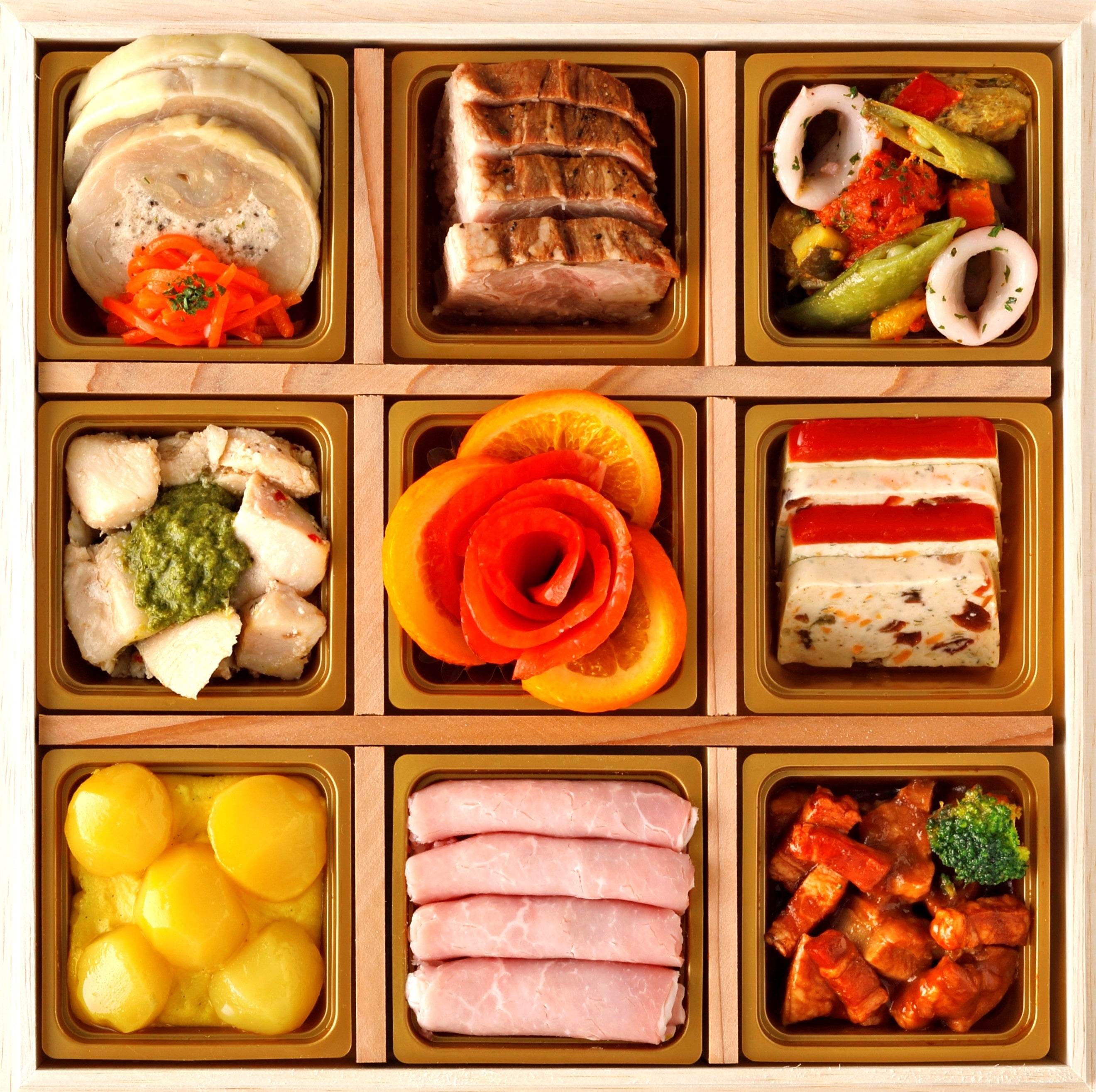 ローマイヤレストラン 銀座店のシェフが監修した、洋風の華やかさを取り入れた本格おせちとオードブルです。