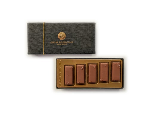 ミルクチョコレートに杏子のリキュールを合わせ、ひとつまみの塩が甘さをキュッと引き締め、味わいに奥行きをもたらします。
