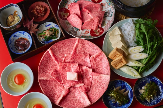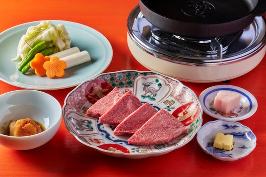 鍋:【南部鉄器】による特注鍋伝統工芸・南部鉄器による、すき焼き専用の特注鍋。厚みのある鉄鋳物は豊かな蓄熱性をもち、鍋全体に均一な熱を伝えます。肉の旨味を逃さず香ばしく焼き上げ、野菜や豆腐にはじっくりと熱を届けて、素材の味わいを丁寧に引き出します。