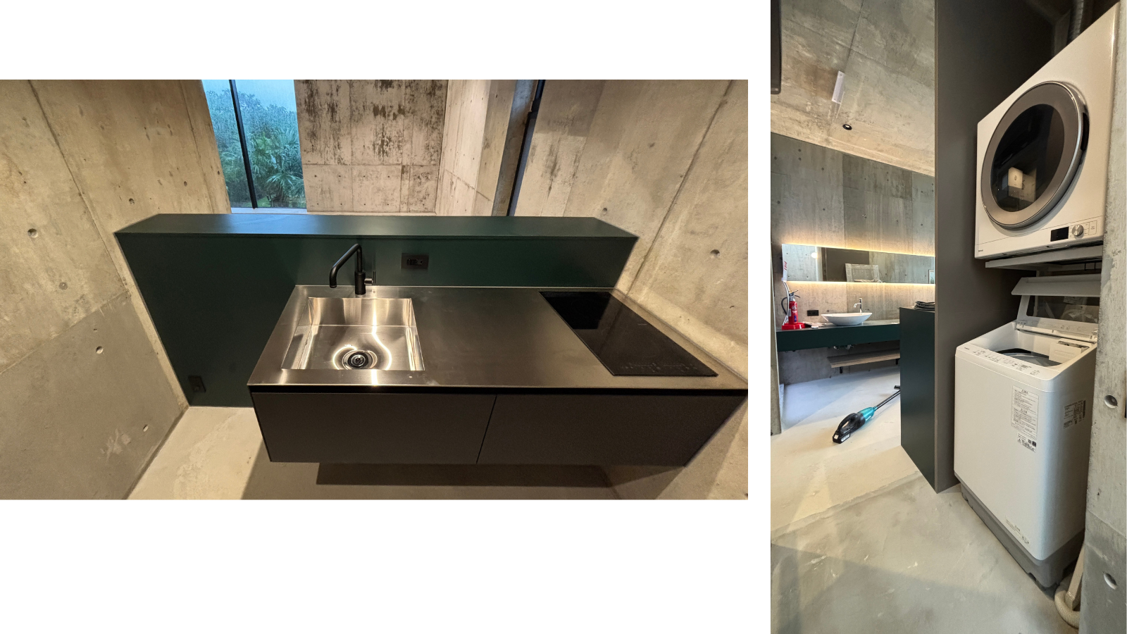 3階のテラスとサウナがあるエリアは、リビングのように長時間居たくなるように空間設計にしているので、ウォーターサーバー、炭酸水メーカー、ミニ冷蔵庫、ネスプレッソを設置。