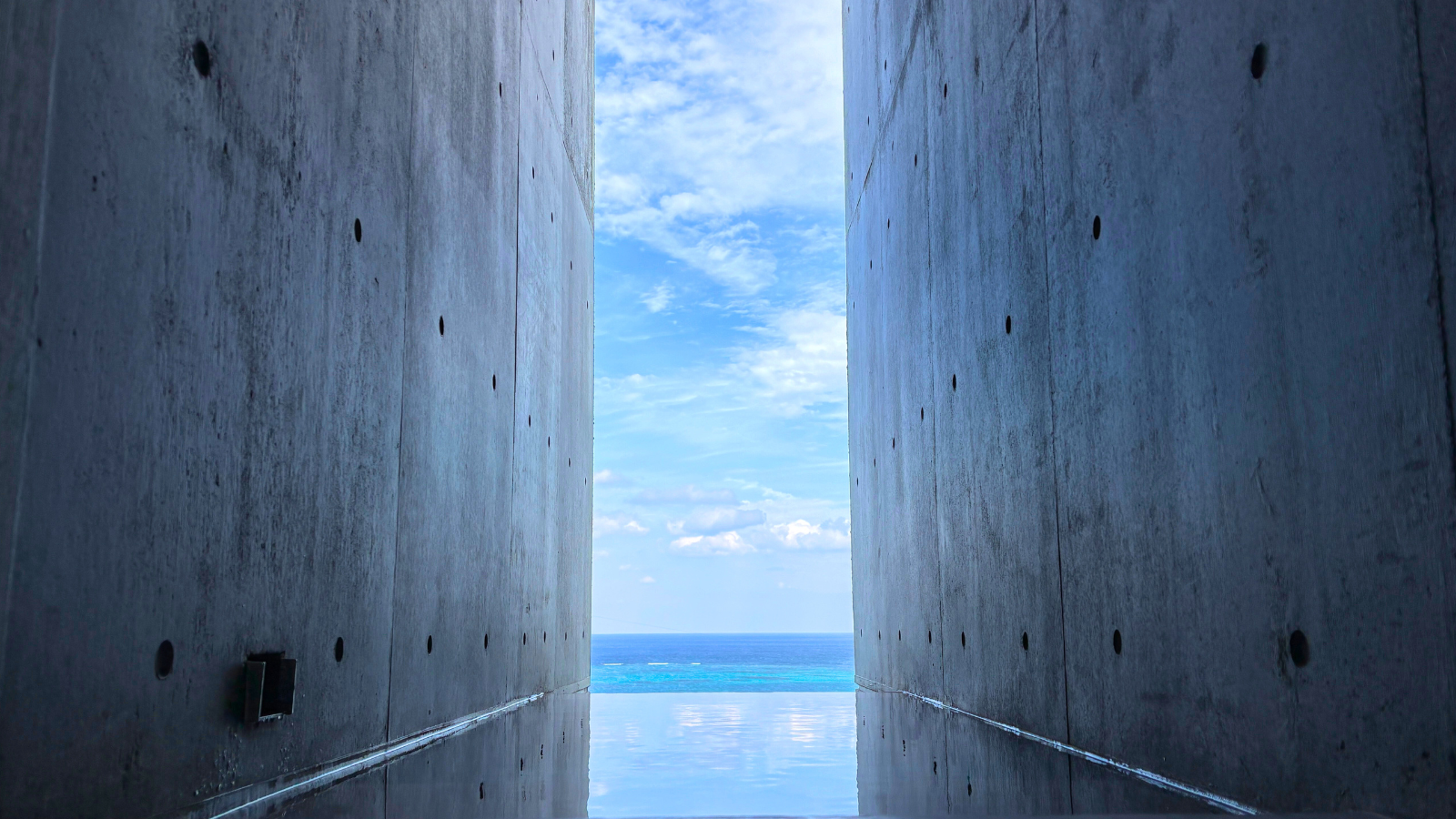 青い海と空が、まるで額縁に収められたアートのように広がります。時間と共に景色が変化する楽しみも。