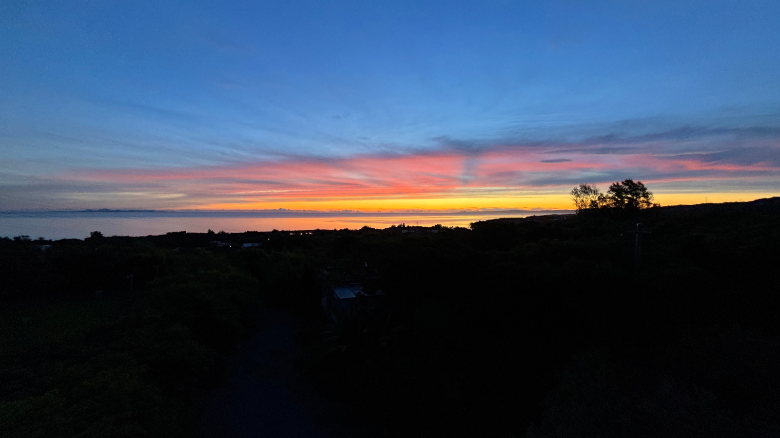 ヴィラのテラスからの朝焼けの様子。