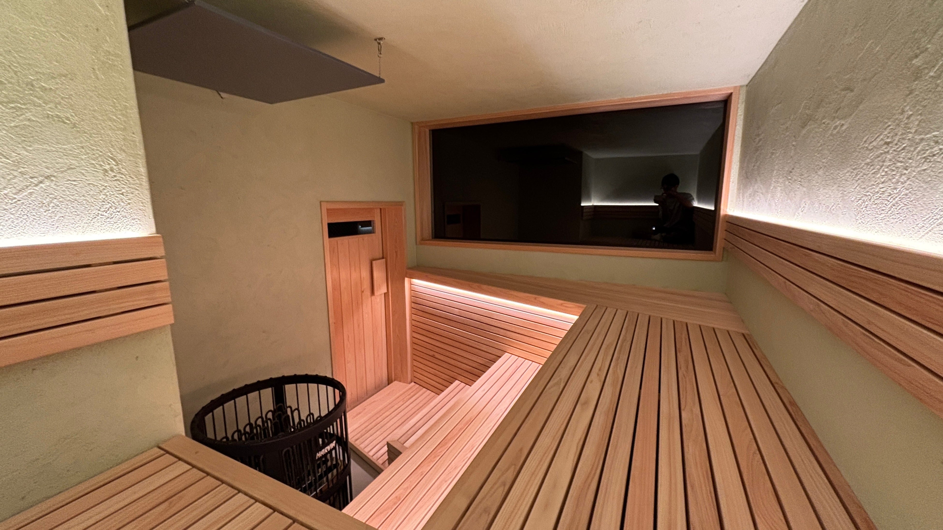 サウナ内のベンチの高さは、本場フィンランド式サウナに習い、「ロウリュウの法則」を意識してセンチ単位で設計しました。