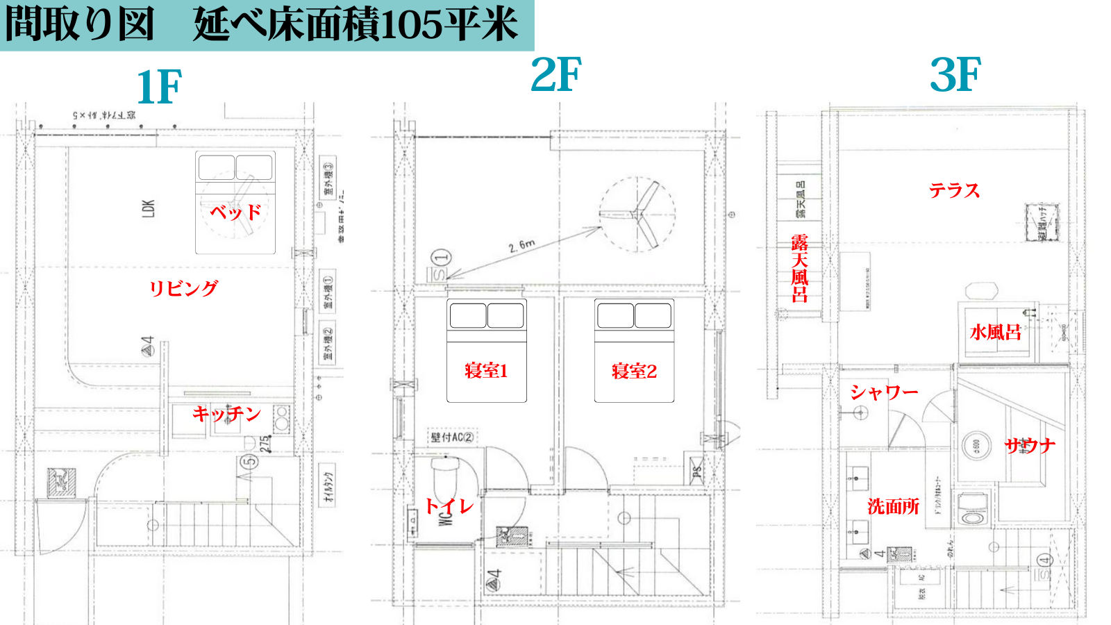 延床面積:105平方メートル (鉄筋コンクリート造3階建)