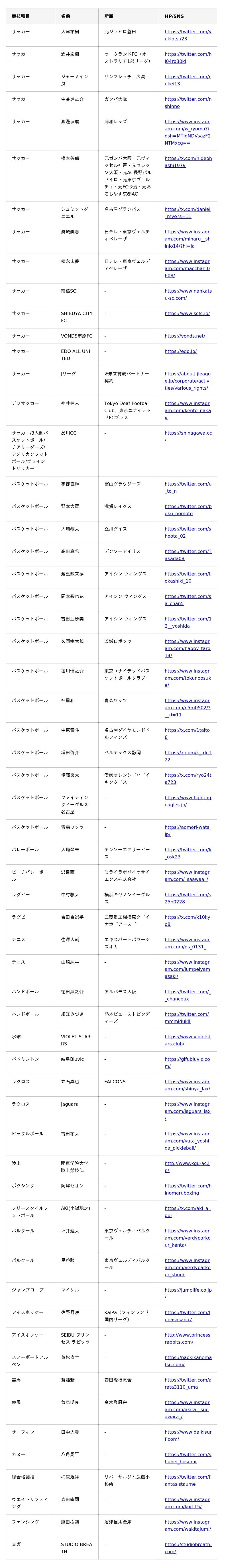 <BASE UP SPORTS サプライヤー契約一覧(現時点)>