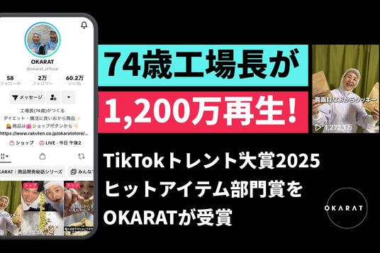 この度は栄誉ある「TikTokトレンド大賞2025」ヒットアイテム部門賞をいただき、大変光栄に思っています。日頃からOKARATのコンテンツを応援してくださっているフォロワーの皆様、ご利用いただいておりますお客様に心より感謝申し上げます。