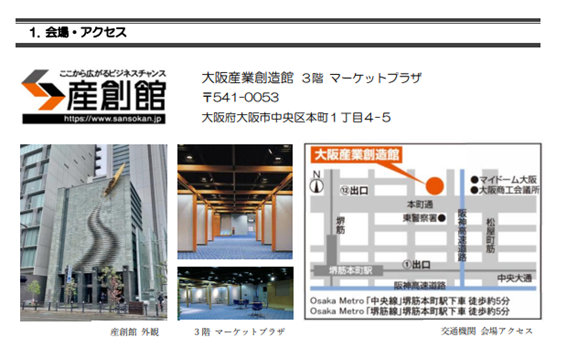 場 所 : 大阪産業創造館 3 階 マーケットプラザ