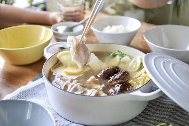 レモンのさわやかな風味と、牡蠣とチキンスープの旨味を合わせた鍋つゆの素です。豚肉のおいしさを一層引き立てる味わいです。 レモンの爽やかな風味ではじまり、加熱を続けながら食べ進めると豚肉の出汁がつゆに流れ出て風味が変化。 飽きることなく最後まで美味しい鍋つゆです。