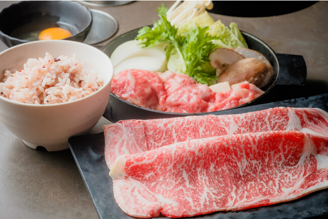 1.ランチタイム限定プラン:「霜降り黒毛和牛のすき焼きセット」を1,129円(税込)で提供