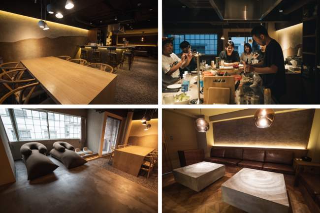 1Fとセットで利用できる2Fラウンジのキッチンコーナーは鉄板を完備。貸切プランでは12種類の具材を好きなように混ぜ合わして楽しむオリジナル料理「もんじゃランド」も事前予約で注文可能です。