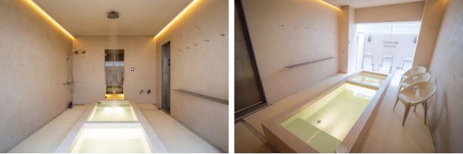 サウナから出て、すぐに冷水シャワー。そして目の前に水風呂。上がったその先には外気浴スペース。極限まで無駄を省き、心地よさを最大限に引き出す究極の導線を作り上げました。