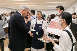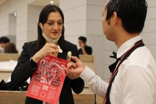 来場したイタリア人の方、イタリア料理のシェフ、イタリア料理関係者など合計約1,000名の方々に「RISOUNO!」を試食いただいたところ、 「ワインに合う!」「おつまみにいい!」「食感が好き」「ワインにおせんべいが合うなんて意外!」などの感想を数多くいただきました。会場にはBUONO!ボードをご用意しており、商品を気に入ってくださった方にBUONO!(美味しい!)シールを貼っていただいたところ、合計821ものBUONO!をいただき、お客さまから直接「美味しい」とのお言葉をいただける貴重な機会となりました。