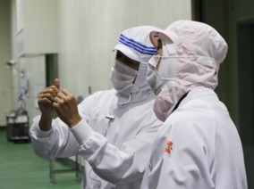 落合務シェフには 「RISOUNO!」開発の過程の中で、直接岩塚製菓の工場にも足を運んでいただきました。米菓が出来上がるまでの生産過程をご覧いただき、日本のお米100%を使用する当社のこだわりを感じていただきました。作り手同士が直接ディスカッションをし、イタリアの食文化と日本の食文化の融合を深く感じた訪問イベントとなりました。