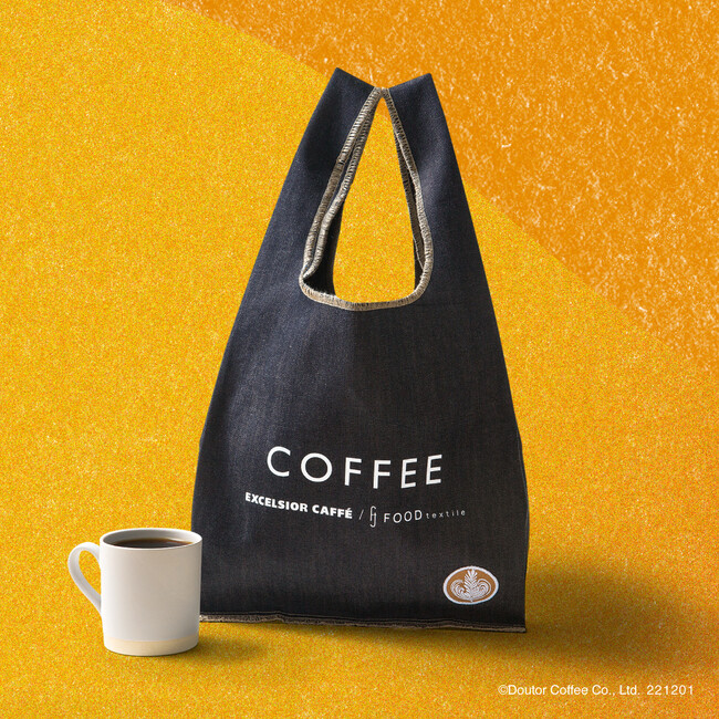 FOOD TEXTILEとコラボレーションしたオリジナルバッグ。抽出後のコーヒー粉を使用して染色したマルシェバッグです。