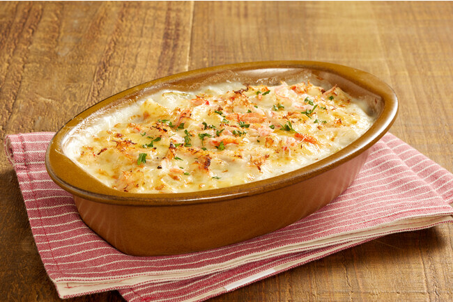 北海道産ラクレットチーズ・北海道産ゴーダチーズ(粉チーズ)・本ズワイガニ(※)・香り箱(※)・モルネーソース・マッシュルーム・ベーコン・バター・ニンニク・オニオン・くし切りオニオン・パセリ