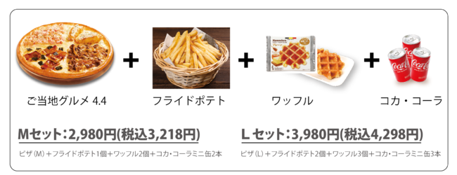 でもれなくついてくるお得なパーティー仕様です。ベルギー産発酵バターを使用した(※)「マネケンワッフル」やサイドメニューの最定番「フライドポテト」、ピザ&ポテトには欠かせないコカ・コーラの4点セットでお届け!クリスマスパーティーはこれ1つでOK!大切な皆さまとの楽しいひとときをサポートさせていただきます。