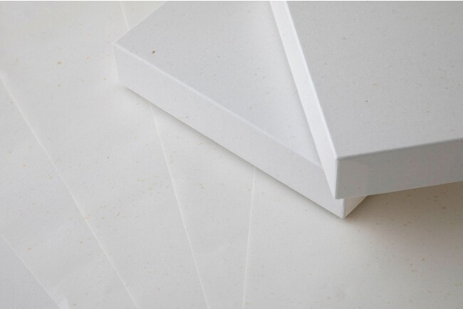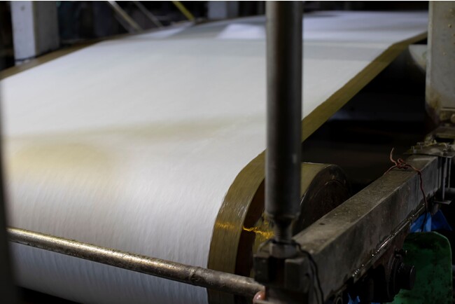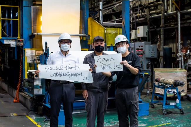 実は、この製紙会社にとっても、ういろでの紙づくりは初めて。リンゴやミカン、コーヒーなどを使ったことはあるそうですが、ういろのような「粘り気」のある素材は初挑戦でした。懸念されたのは、熱を加える製紙工程で、この粘り気が糊のようになって機械に引っ付いてしまわないかということです。