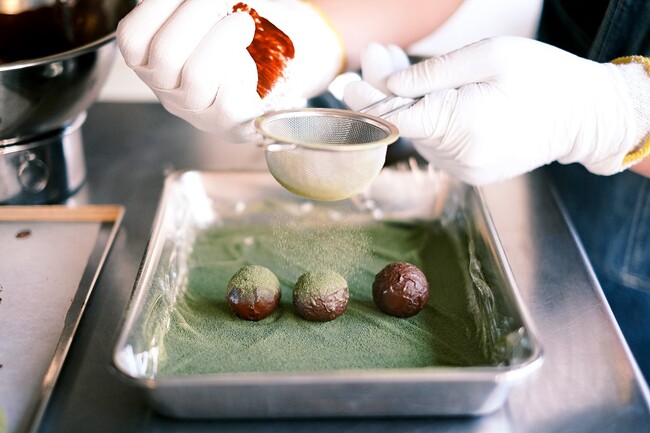 “RYOKU”は、Bean to Bar専門店の「CRAFT CHOCOLATE WORKS」と「YOU IN」がタッグを組み、職人と試行錯誤しながら、構想・レシピ開発に一年半の時間をかけて誕生した特別なトリュフショコラです。繊細なアールグレイ煎茶の香りと深みを引き立てるガナッシュに、ビターなチョコレートでコーティングしました。