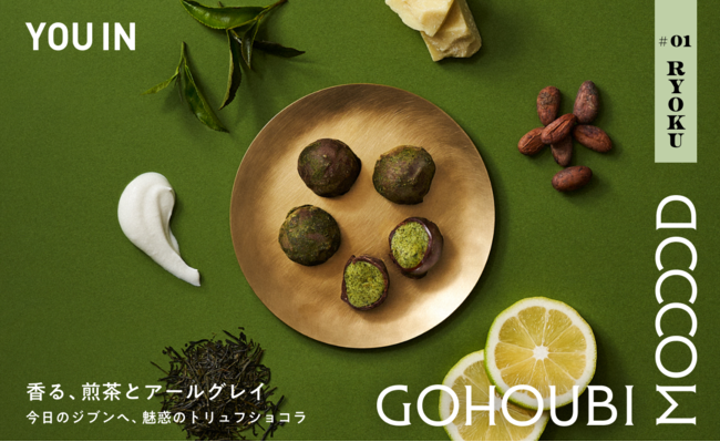 株式会社Gunosy(本社:東京都渋谷区、代表取締役社長:竹谷祐哉、以下 Gunosy)が展開する気分やシーンに合わせて選ぶ、“ムードペアリング体験“を提供する「YOU IN」から、自分へのご褒美や大切な人と一緒に語り合う時間のお供に、プレミアムなムードとして「GOHOUBI MOOD」が新たに登場します。そして「GOHOUBI MOOD」より、「YOU IN」初となるアールグレイと煎茶のトリュフショコラ“RYOKU”を11月28日(月)より、数量限定で予約販売いたします。