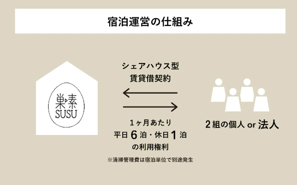 連泊の利用も可能で、オーナー様は、個人・法人両方の契約が可能で、法人の場合は福利厚生として従業員の方のご利用も可能ですので、ご自身のライフスタイルに合わせて利用できます。