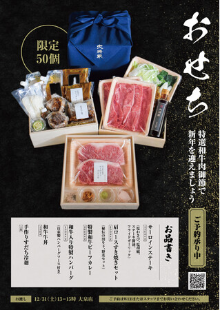 新年を迎えられた喜びを、大将軍のこだわりの技術とノウハウを詰め込んだ”肉づくし和牛おせち”で盛大にお祝いしてほしい、と思い始まったこちら。