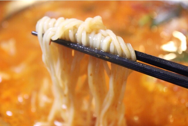 ついつい最後の一滴まで飲み干したくなる旨辛ラーメンです。