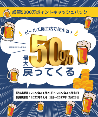 店内飲食利用額に応じて、利用額の半額相当を飲食用チケットとしてお客様に還元します。
