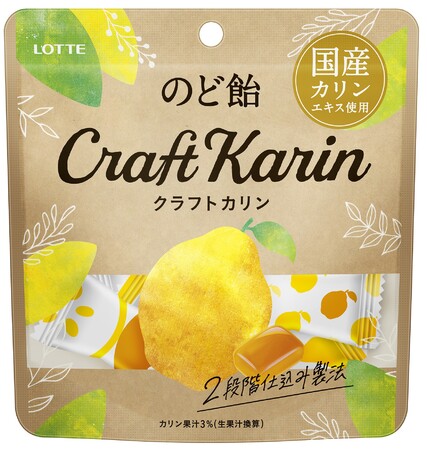 国産カリンエキスを使用し、2段階仕込み製法で素材本来のカリンの味や香りが楽しめるのど飴。(カリン果汁3%使用(生果汁換算))