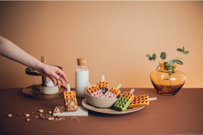 「カリッ」としたプレッツェルに、「パキッ」と分厚いチョコ、しっとりボリューミーなワッフル生地で、様々な食感を楽しんでいただけるフレーバーです。