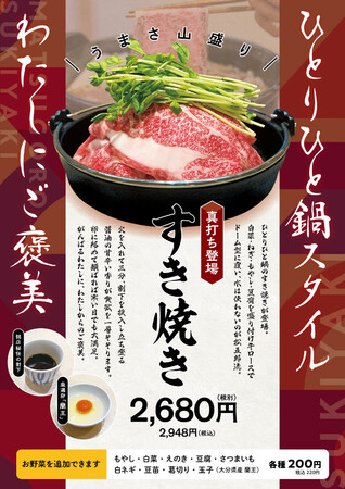このたび、オープン当初からたくさんの客様からリクエストいただいておりました【すき焼き】の販売を開始致しました。