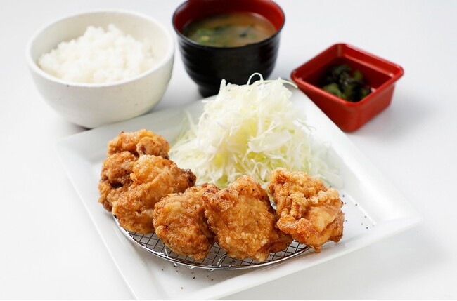 からあげグランプリ(R)11年連続金賞受賞中の秘伝のタレにしっかりと漬け込んだ「もも肉」のからあげ。衣がサクッ中身はジューシーお店でも一番人気の部位を使用しました。独自製法で揚げる事でサクふわジューシーな食感をお楽しみいただけるボリューム満点な定食です。