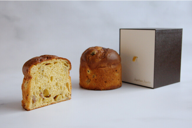 この季節のグレートリュフと Maison Brèmond 1830 (メゾンブレモンド1830)の 白トリュフカマルグソルトを合わせた生地に栗を入れ、香り高いパネトーネに仕上げました。