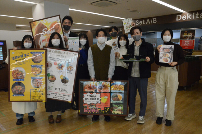 持続可能な食生活の推進を目的に、駒澤大学の各務洋子ゼミの学生と「肉の日に大豆ミートプロジェクト」の参画企業が共同して、2022年11月7日(月)~11日(金)の5日間、大豆ミートを活用した朝食のメニューを発案し学生食堂で提供実施。