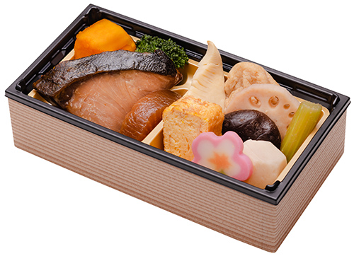 蟹と錦糸卵を乗せただし炊き込みご飯に、国産のぶりを使用したぶり大根やかぼちゃ煮など、だしを利かせたおかずを詰め合せた冬限定のお弁当です。