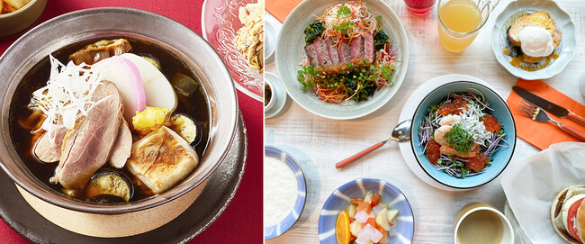 さらに、こだわりのバンズを用いた「ENCOREバーガー」やお肉と野菜のバランスが嬉しい「サラダステーキ丼」、お正月にもぴったりの「本日の1品 ~海丼~」も揃います。これらは朝食ブッフェで人気のメイン料理3種ですが、“新春スペシャル”として、ランチタイムでもごゆっくりお楽しみいただけます。