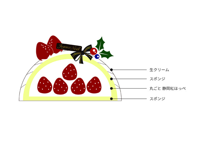 ドームの中にはスライスをしていない静岡県産 ”紅ほっぺ” を贅沢に丸ごと包み込んだサプライズが溢れる逸品。たっぷりの生クリームはまるで雪のような柔らかいくちどけ。シンプルながらも気品漂う姿は粉雪の積もる熱海の山々をイメージしましたご家族で楽しめる5号サイズです。