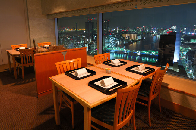 東京ベイエイリアなどを一望できる落ち着いた雰囲気で大切な方との特別な和食ディナーをお楽しみください。
